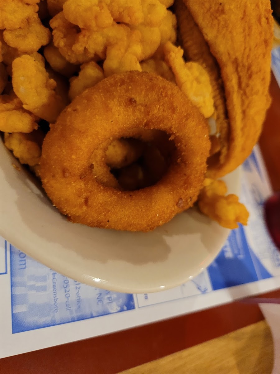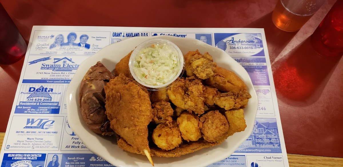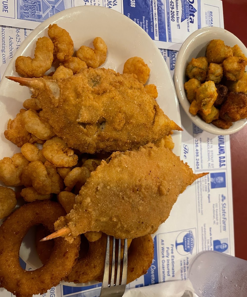Great seafood and amazing Chicken Alfredo!! Salads and tea are great. For a meal that’s worth it go check out Mayflower in Asheboro.